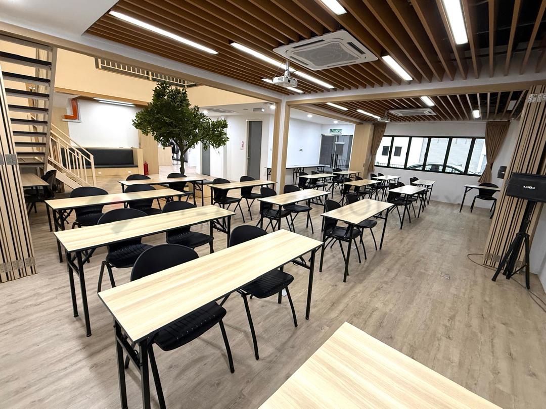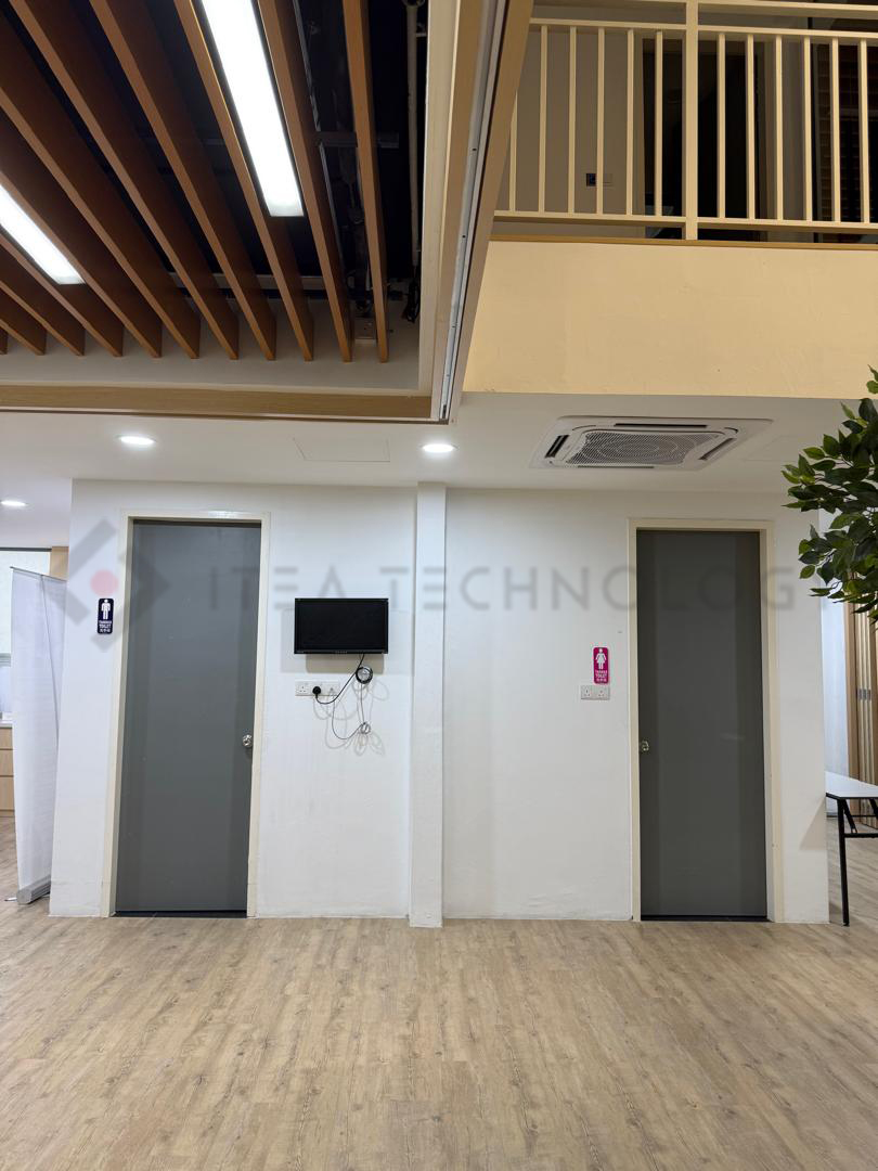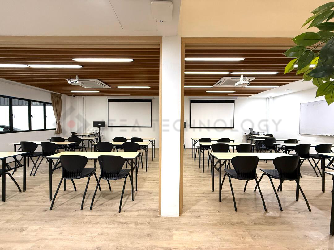 Our ground floor is available for rent, suitable for organizing events such as Business Training, Courses or Seminar. The overall space is 35 x 62 sq ft, consisting of Lobby, Discussion Room, Training Room, and 4 Restrooms. Ground floor area equipped with 4 ceiling cassette air conditioners to make sure comfortable and ventilation. Training room is equipped with ground power sockets, you don't need to bring your own extension cord. 2 projectors to make sure every participant has a good distance of view during meetings or lessons.